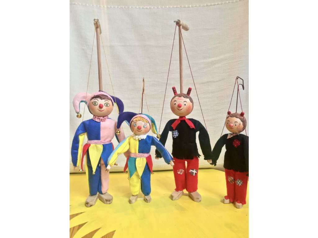 Dřevěné loutky, ručně vyrábí Sváťa a maluje a šije Alenka